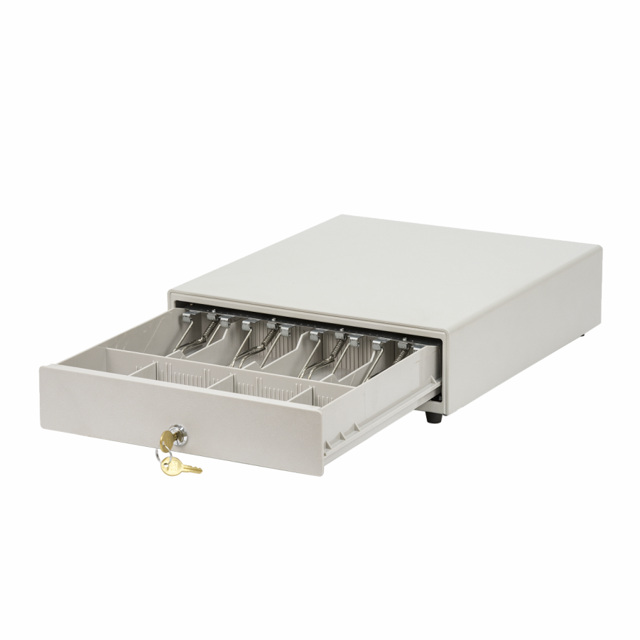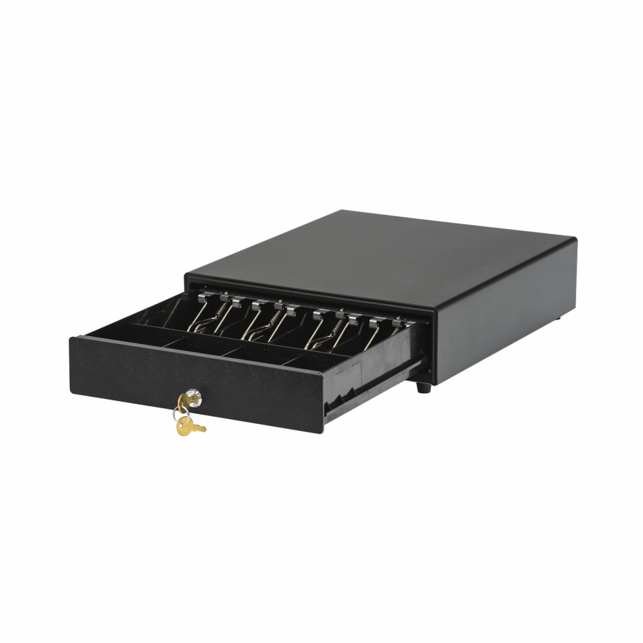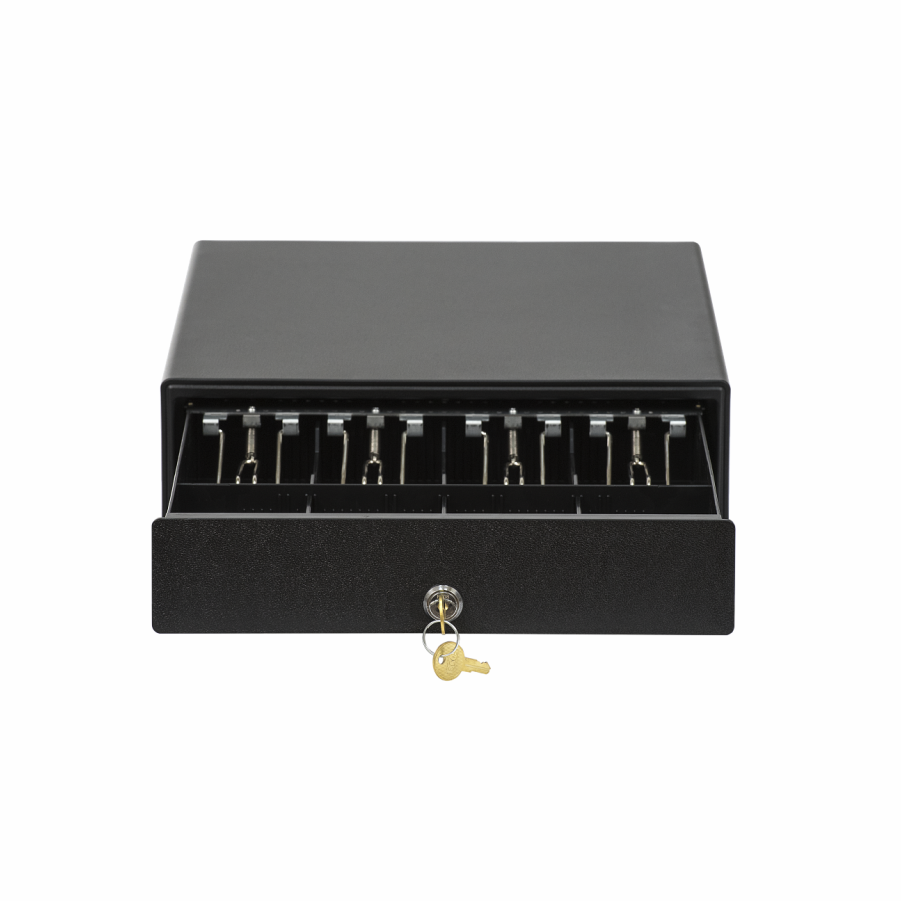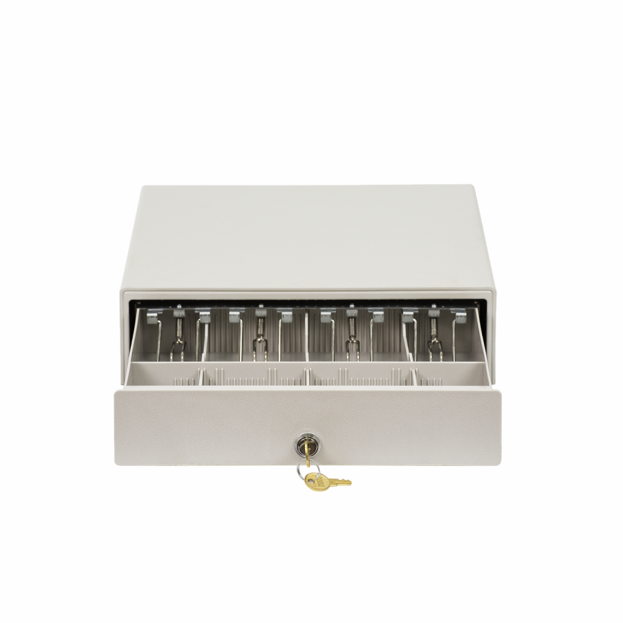 Компактный денежный ящик создан специально для кассовых мест с ограниченным рабочим пространством. Он идеально подходит для установки в магазинах у дома, небольших кафе и заведениях стрит-фуд, на островках в торговых центрах.